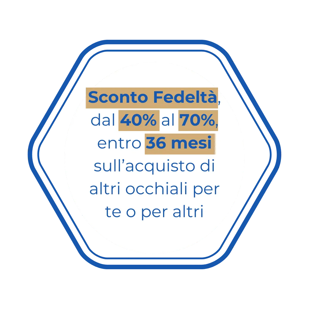 Sconto Fedeltà dal 40% al 70%, entro 36 mesi, se acquisti ulteriori occhiali per te o per altri