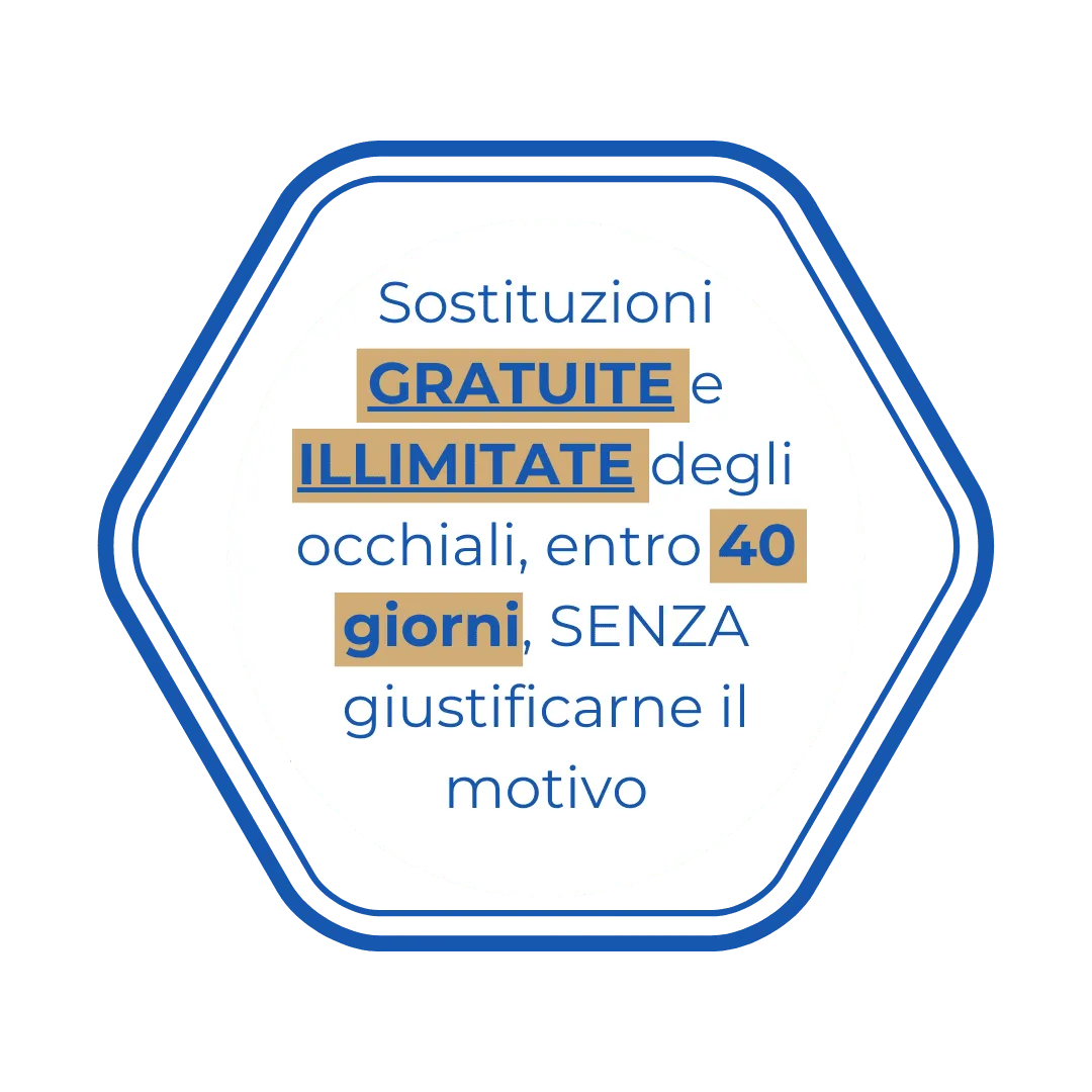 Sostituzioni ILLIMITATE degli occhiali entro 40 giorni