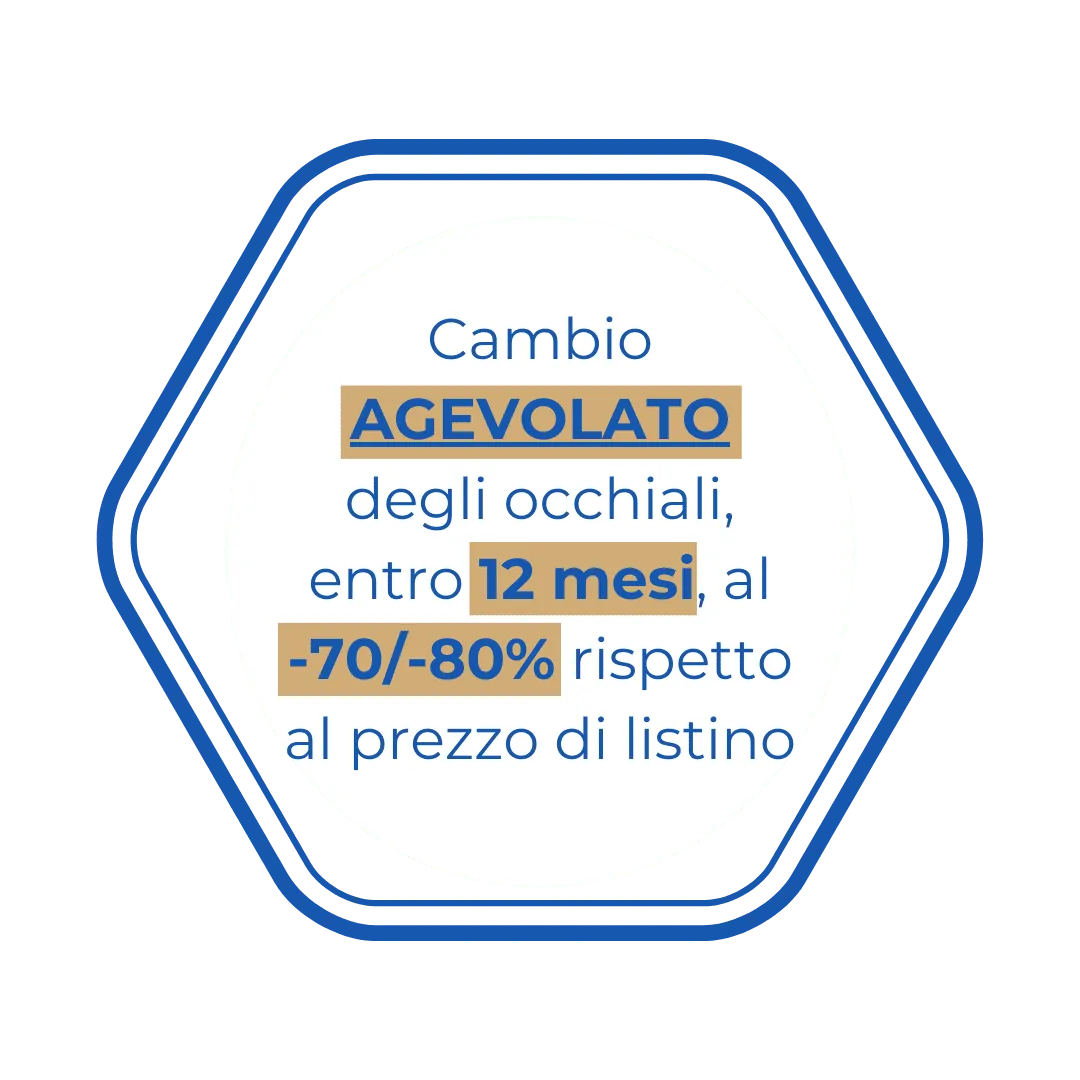 Cambio AGEVOLATO degli occhiali entro 12 mesi (-70%/-80% sul listino)